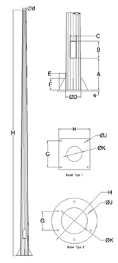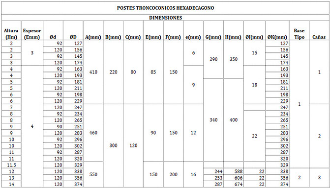 Postes hexagonales de 2.5m a 30m para iluminacion y parrayos